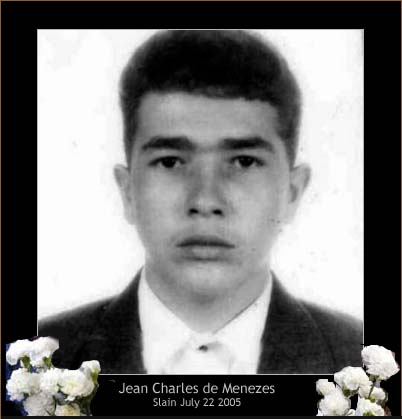 Jean Charles de Menezes, 27, was chased by plain clothes police into the Stockwell Tube in London on Friday. He was Brazilian. An electrician. Earlier reports said Jean Charles, yet unidentified, was Asian. Instead, he was Brazilian. He was wearing a coat that the police said was suspicious, considering the weather. Could have been harboring a bomb. A coat they said looked like it was padded. What exactly happened is sketchy because we still have only earlier reports, when Jean Charles was still a suspect, when Jean Charles was apparently a suspect because he emerged from a house that was under surveillance, when the impression would be given that he was guilty of being potentially a suicide bomber. We do know that, chased by the police, Jean Charles de Menezes was terrified. He ran to a train. Witnesses saw his face, saw his last look at the world, on the train. They said he was terrified. That he looked like a cornered rabbit. He tripped as he got onto the train, grabbing a pole, and the police were right behind him, pushing him down to the floor. Rather than taking advantage of Jean Charles de Menezes’ tripping throwing him off balance, which may have been an opportune moment for the police to grab his hands and cuff them, which would mean Jean Charles de Menezes would be alive today and able to tell his story of what happened, the police, piling on top of him, promptly fired. His gun drawn, one of the officers pointed his automatic at Jean Charles de Menezes’ head and